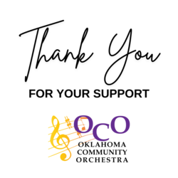 Concerts put on by Oklahoma Community Orchestra are largely supported by patrons like you! Donors are extremely important to Oklahoma Community Orchestra’s mission of promoting the performing arts, providing quality performances of symphonic literature at a nominal charge to the community, and exercising and improving the artistic skills of those performing in the orchestra.